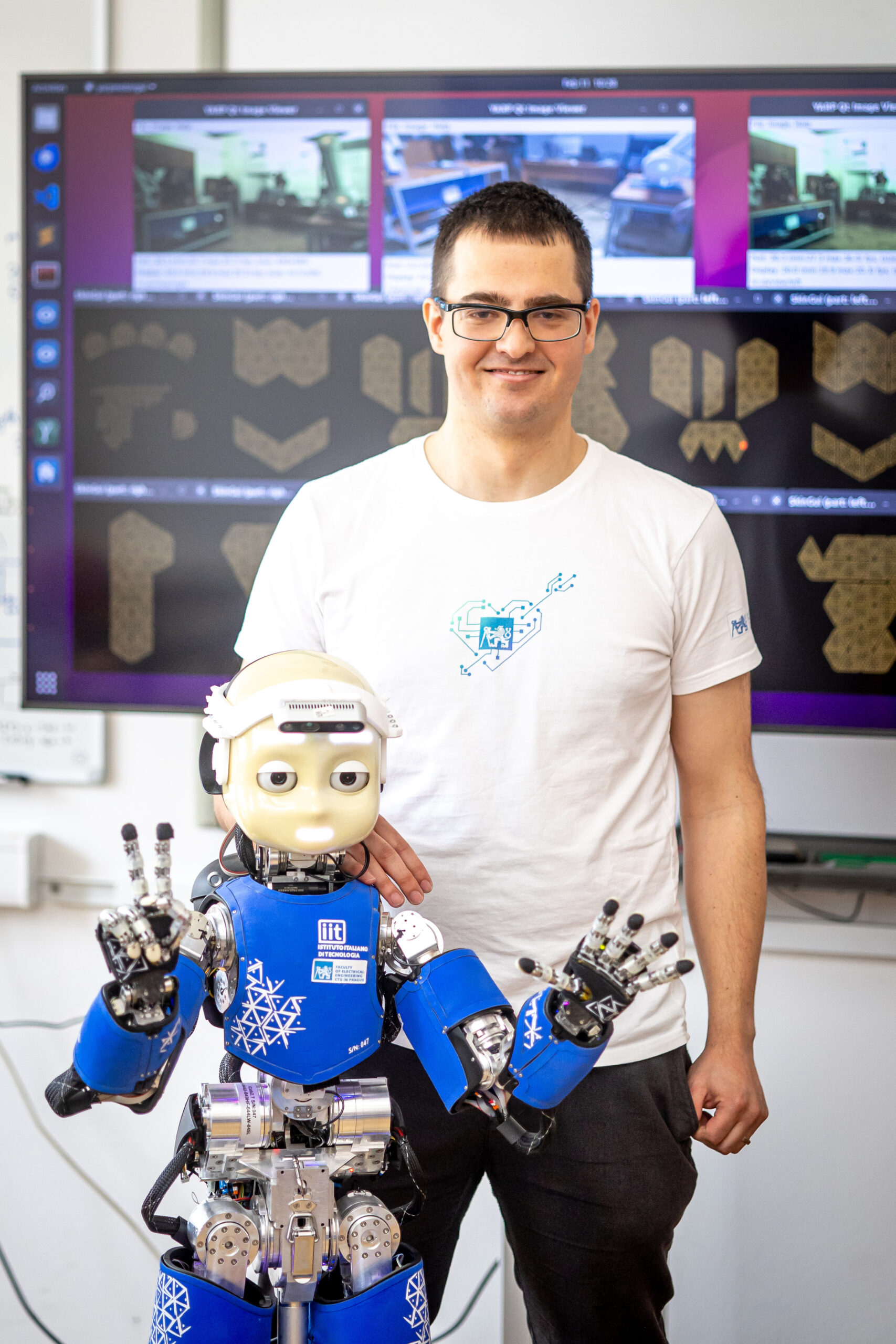 Jakub Rozlivek si dal za cíl zlepšit bezpečnost a efektivitu interakce člověka s robotem v těsné blízkosti. Ve své práci zkoumá, jak by roboti mohli lépe „vidět“ své okolí pomocí kamer a dalších senzorů a jak by mohli tyto informace využít k řízení vlastního pohybu. Ukazuje také, jak velký vliv mají měkké ochranné prvky na snížení síly nárazu při kontaktu s člověkem. Nejvýznamnější částí práce Jakuba Rozlivka je návrh řídicího systému, který umožňuje robotu rychle reagovat, vyhýbat se lidem a pohybovat se podobně jako člověk. Tuto reaktivní interakci testoval při hraní her robotů s lidmi.